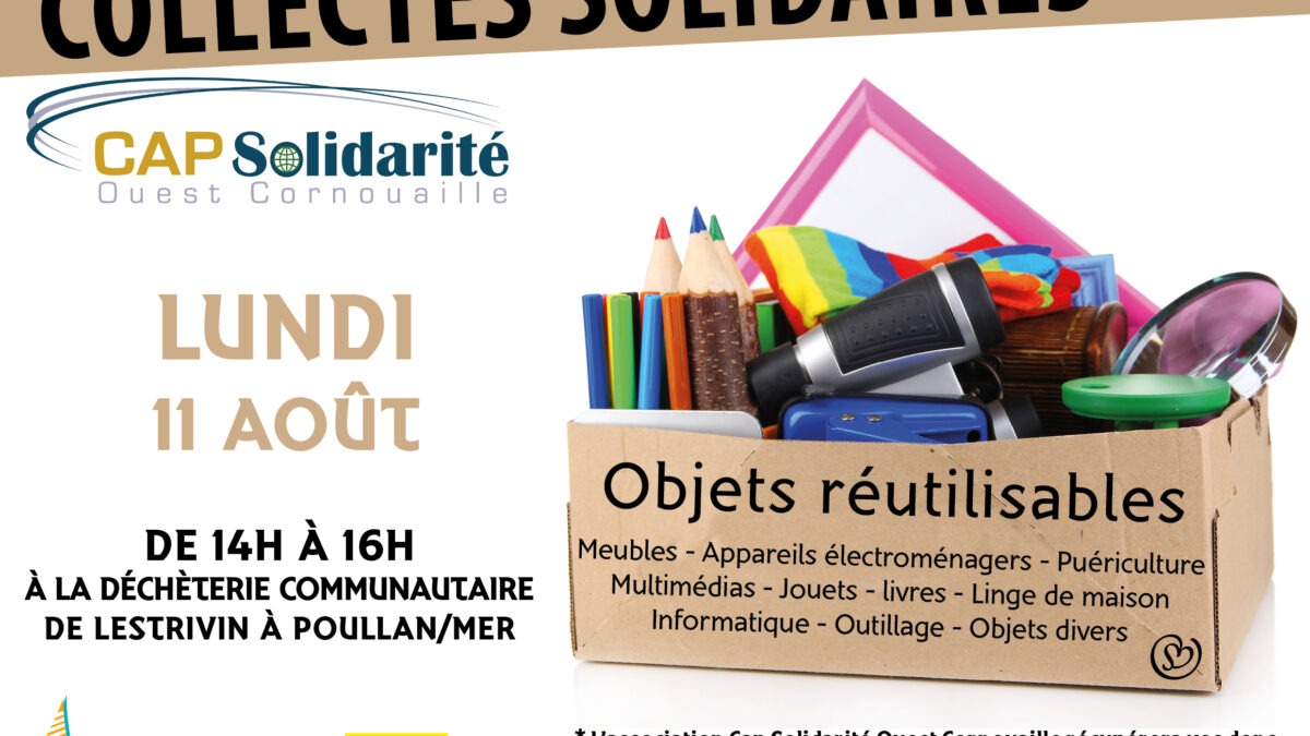 Collecte solidaire : donnez vos objets réutilisables le 11 août à la déchèterie de Lestrivin à Poullan-sur-mer