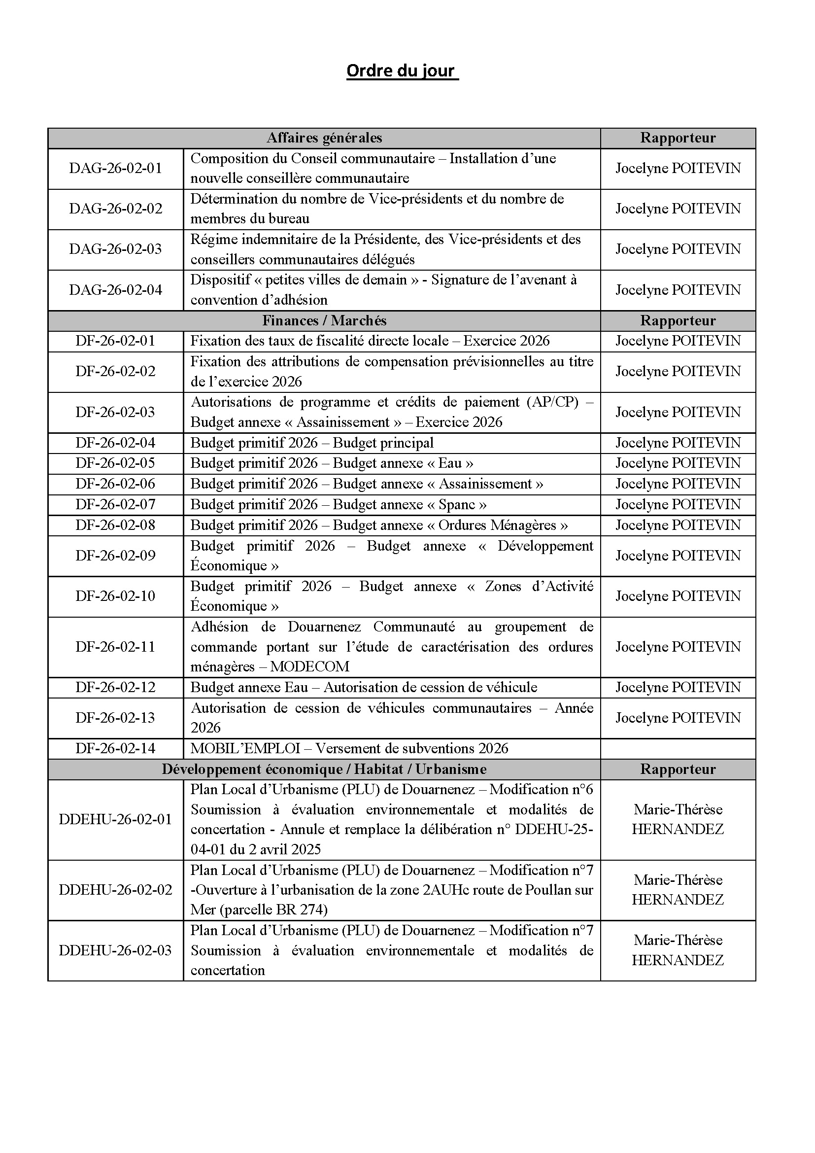 Le Conseil communautaire se tiendra dans les locaux de Douarnenez Communauté le mercredi 4 février 2026 à 18h00.