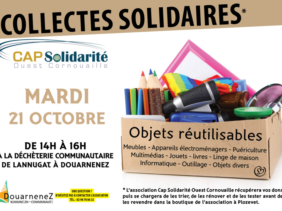 L’association Cap Solidarité Ouest Cornouaille sera présente à la déchèterie communautaire de Lannugat à Douarnenez le mardi 21 octobre 2025, de 14h à 16h, pour récupérer […]